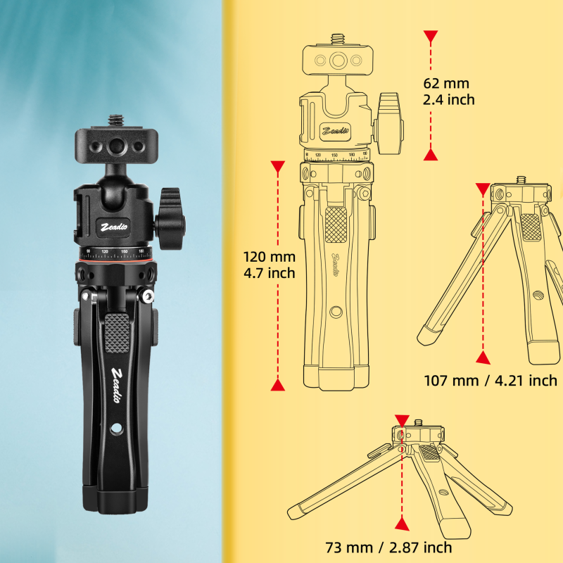 - Adjustable Height Range: The tripod legs allow height adjustment from 24mm to 107mm, enabling you to easily customize the setup for low-angle shots, tabletop recording, or elevated perspectives on any surface.