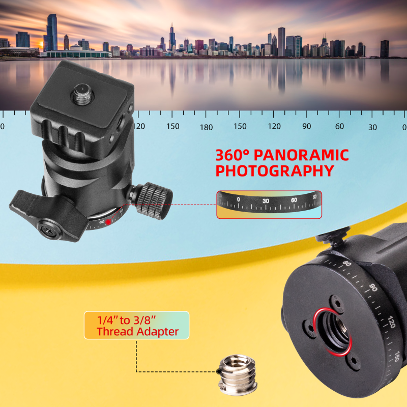 - Universal 1/4" Screw Compatibility: Features a universal 1/4" screw adapter and side mounting points (1 x 1/4" screw hole and 2 positioning holes on the ball head base), ensuring compatibility with all cameras, gimbals, and action cams. This reliable camera tripod, camera stand, and travel tripod offers flexibility for various photography and videography setups.