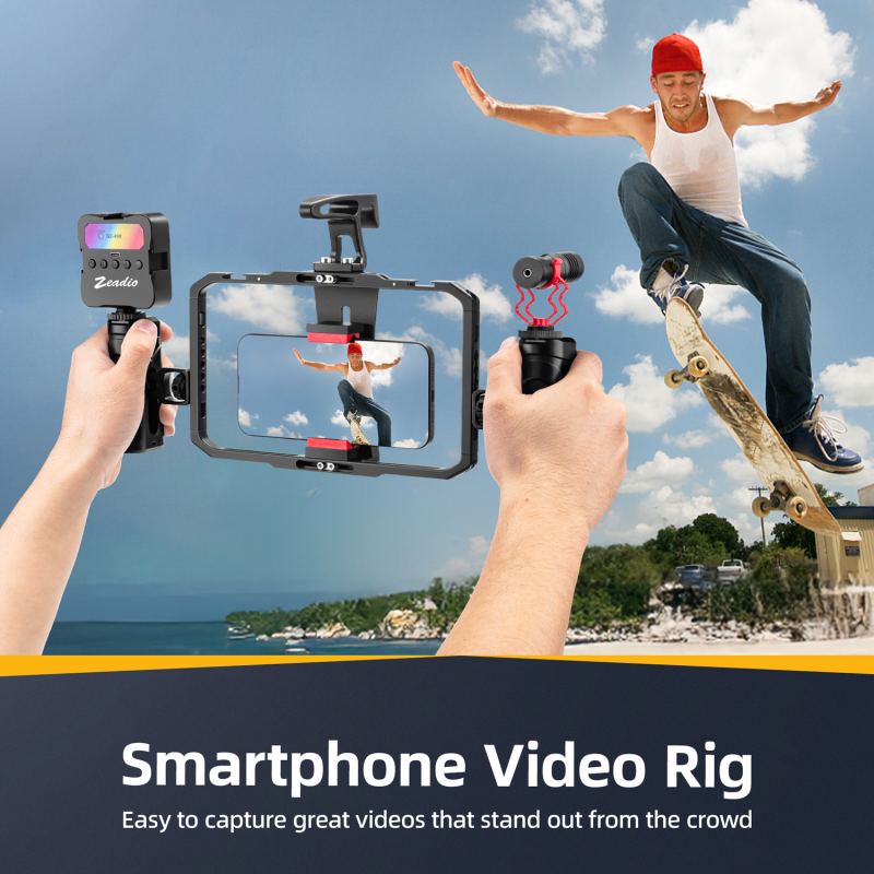 Zeadio All-in-One Phone Video Vlogging Kit, Versatile Rig Cage with RGB Light, Mic, Arca Ball Head Tripod - Perfect for Recording/YouTube/Live Streams/Tabletop Filming/Content Creation/Travel etc