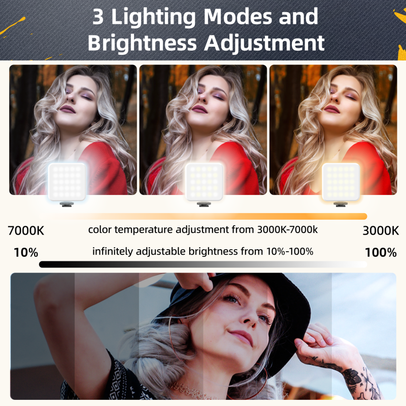 - Adjustable RGB Video Light: Featuring 6 color lighting effects and a color temperature range from 3000K to 7000K, this light provides ideal illumination for videos, photos, and live streams.